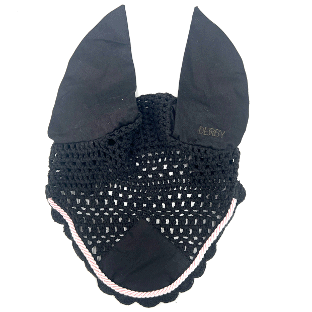 Cuffietta realizzata in morbido cotone crochet con orecchie in lycra per garantire al tuo cavallo il massimo benessere proteggendolo dagli insetti, dal vento e dai rumori. Decorata con cordino da coordinare con i sottosella RWP.